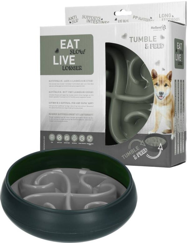 De Eat Slow Live Longer Tumble & Feed voerbak heeft een ronde onderkant en beweegt alle kanten op. Hierdoor moet uw hond extra moeite doen om bij het voer te komen. Uw hond zal daarnaast beter kauwen wat een positieve bijdrage heeft op de gezondheid en het gebit.