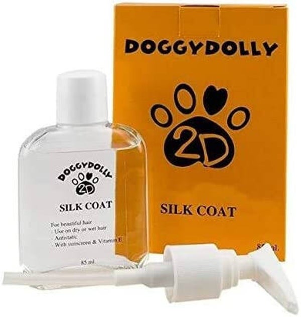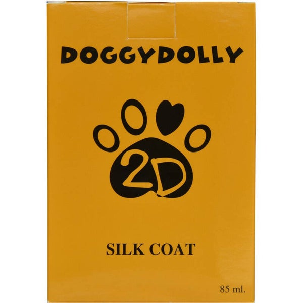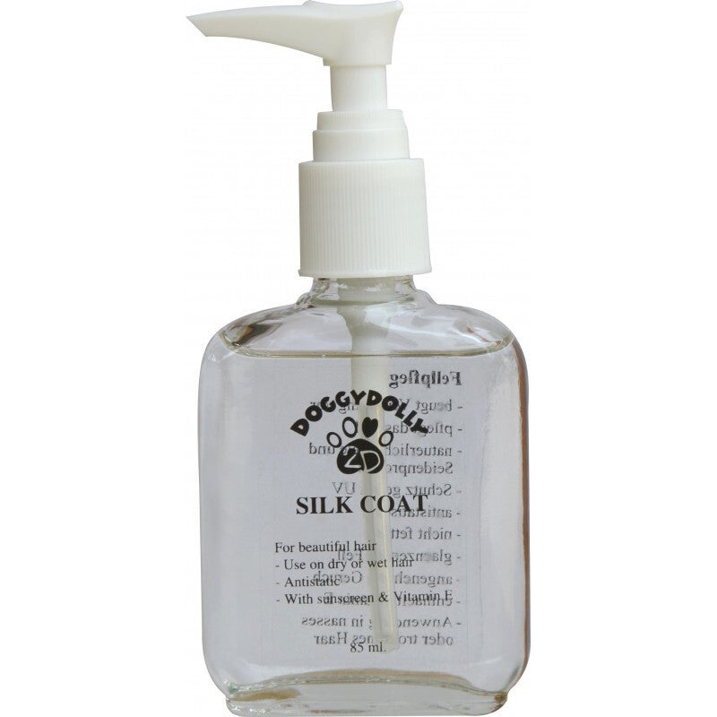 Doggydolly "Silk Coat" is een vachtverzorgingsproduct op basis van zijdeproteïne. Doggydolly "Silk Coat" kan gebruikt worden voor alle vachttypes en wordt vooral aanbevolen voor alle langharige rassen. Het product geeft elke vacht een stralende, zijdeachtige glans. Het voorkomt klitten en knopen, maar laat geen olie- of vetfilm achter. Het heeft een antistatisch effect dankzij natuurlijke zijdeproteïnen en oliën. Tegelijkertijd wordt de vacht beschermd tegen UV-invloeden.