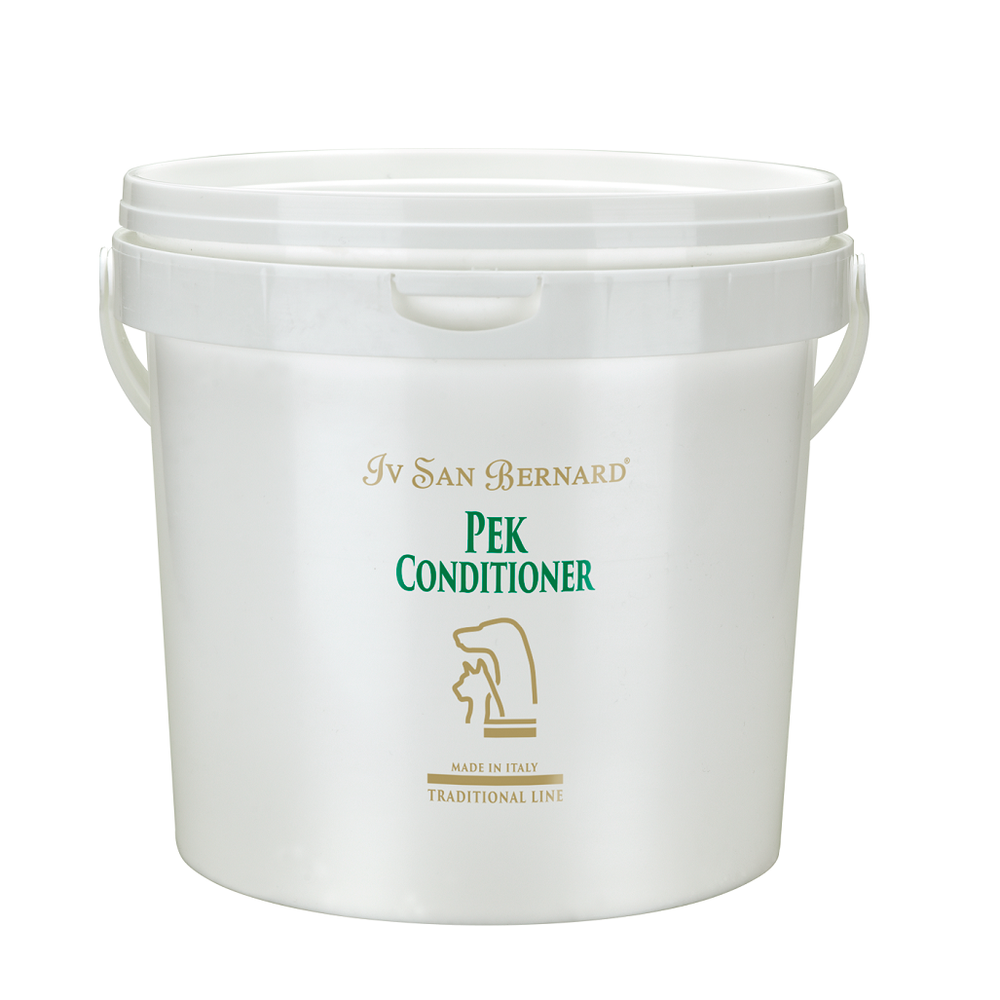 meng Iv San Bernard conditioner voor een bepaald vachttype met PEK conditioner. 3 delen conditioner en 1 deel PEK. Goed mengen. Aanbrengen op een eerder gewassen vacht. Wacht 5 minuten totdat de conditioner in het haar en de huid is opgenomen. Spoel alles af met lauw water. Begin met drogen met een elektrische droger. Kam de vacht met een borstel in verschillende richtingen.