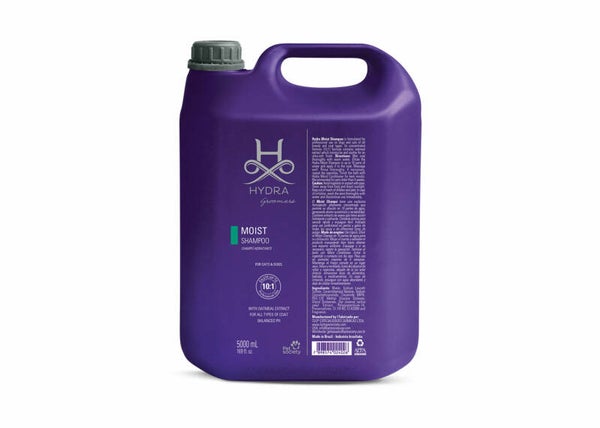 Hydra Moisturizing Shampoo werd ontwikkeld voor professioneel gebruik bij honden en katten en bevat haverextract met zowel hydraterende als verzachtende eigenschappen om de huid en vacht op een zachte manier te reinigen. De unieke eigenschappen van deze shampoo maken het makkelijker om te spoelen en zorgen voor een kortere droogtijd. Dit is een professionele shampoo ontworpen door trimmers voor trimmers en is geschikt voor alle rassen van honden of katten. Zuinig in gebruik, kan 1/10 verdund worden. Verkrijgbaar in 1L en 5L.
