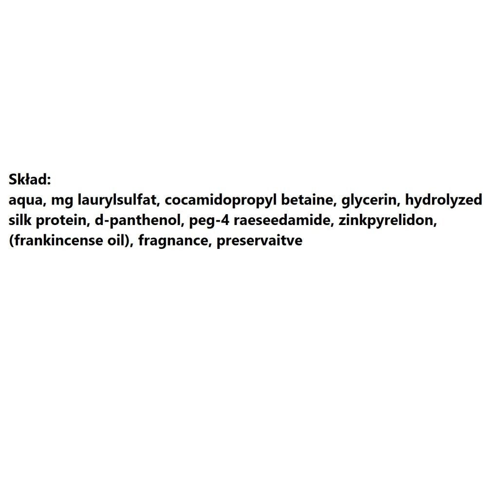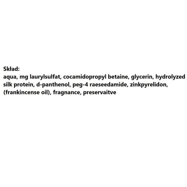 aqua, mg laurylsulfat, cocamidopropylbetaïne, glycerine, gehydrolyseerd zijdeproteïne, d-panthenol, peg-4 raeseedamide, zinkpyrelidon, (wierookolie), geur, conserveermiddel