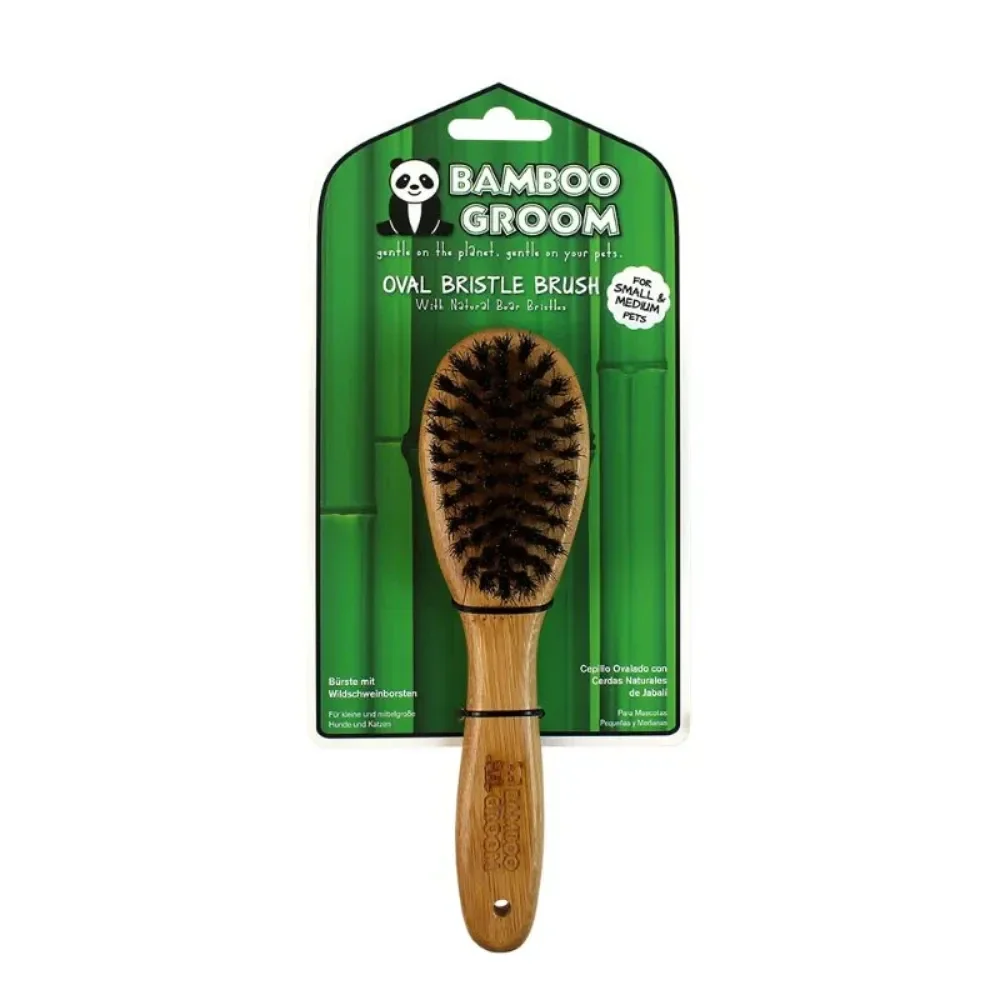 Bamboo Groom Oval Bristle Brush Small/Medium - bamboeborstel met natuurlijke haren, voor honden en katten, kleine en middelgrote rassen
