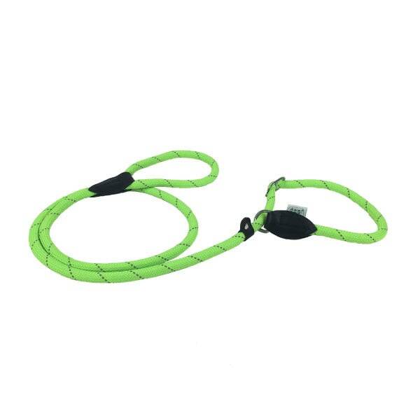 Door de metalen veiligheidsstop kan de hond zich nooit verstrikken in het koord. De lijn is afgewerkt met leer voor optimale stevigheid.