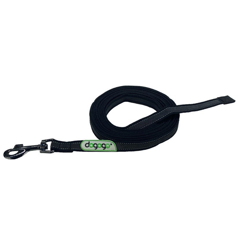 De antislip lijn zonder handvat van Dogogo is geschikt voor zweet- of jachttraining maar ook bij andere sportactiviteiten of wandelingen met de hond. De hondenriem kan gerust achter de hond aan laten slepen, zonder bang te zijn achter een tak blijft hangen. De lijn is gemaakt van robuust nylon met ingeweven elastische rubber. Door de rubberlaag licht de looplijn goed in de hand en is voorzien van reflecterende strips voor betere zichtbaarheid in het donker.