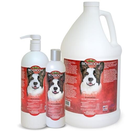 Bio-Groom Flea & Tick Shampoo is een effectief en veilig product ter bestrijding van vlooien, teken, luizen en andere insecten. Het bevat pyrethrin - een natuurlijk insecticide op basis van eiwitten en lanoline. Het reinigt de huid zachtjes en laat deze glanzend en geurig achter. Het is gemakkelijk uit te spoelen en zorgt ervoor dat het haar na het baden gemakkelijker te stylen is. Veilig voor puppy's en kittens. Biologisch afbreekbaar product, pH-gebalanceerd voor de dierenhuid. Concentraat 1:4 .