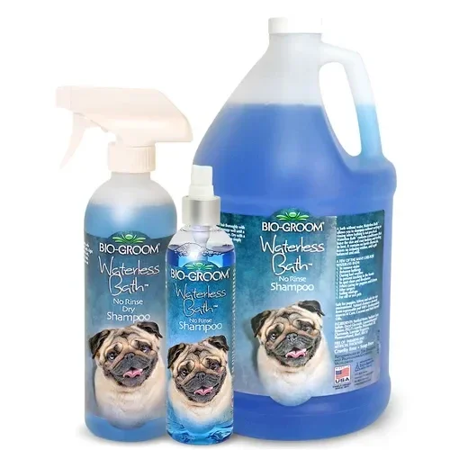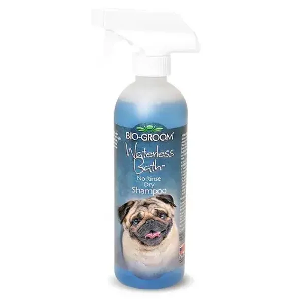 Bio-Groom Waterless Bath is een droogshampoospray die geen tranen veroorzaakt . Bij dit gebruiksvriendelijke preparaat hoeft het haar niet te worden geweekt of afgespoeld . Bevat voedingsstoffen die de huid en vacht een gezond uiterlijk geven. Mild, bevat geen irriterende chemische ingrediënten. Het heeft een natuurlijke pH. Het heeft geen invloed op de werkzaamheid van langwerkende anti-teken- en vlooienpreparaten. Milieuvriendelijk, biologisch afbreekbaar. Product voor honden en katten.